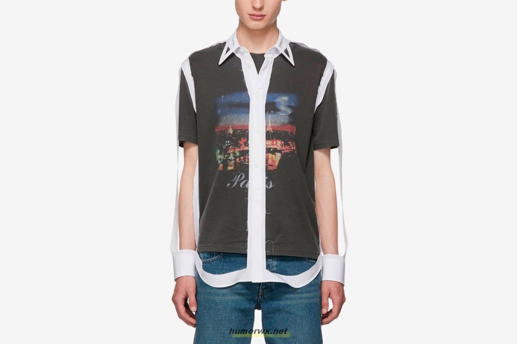 Para esta temporada, a marca ousa mais uma vez criando uma camisa sem tecido. Isso, você leu certo: sem tecido! A peça é inteira vazada e tem apenas o contorno e a gola – veja acima.