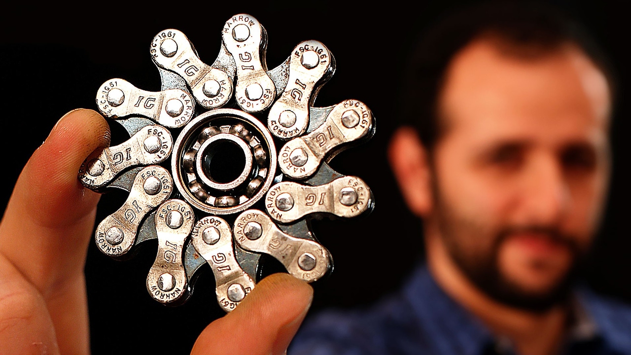 E a saga do hand spinner continua! E este ficou o mais bonito de todos, feito com 6 gomos de corrente de bicicleta. Você vai precisar de um rolamento de skate, um pedaço de corrente de bicicleta e uma fita hellerman (também conhecida como abraçadeira de plástico, lacre ou “enforca-gato”).